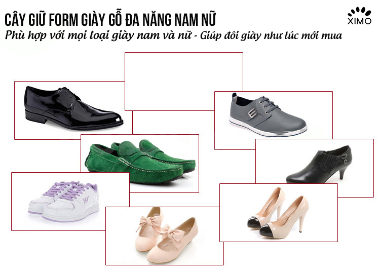 Giày bị biến dạng sau khi giặt, vệ sinh hoặc do bàn chân, tư thế đi bộ, nhiệt độ, độ ẩm, mưa và thậm chí là mồ hôi. Cây giữ form giày (shoe tree) sử dụng lực hồi phục của lò xo để làm cho phần đầu của Shoe tree sát với mặt trước của giày, và phần đuôi được ấn vào gót của giày để điều chỉnh và duy trì form dáng của giày. Dễ sử dụng, hiệu quả rất rõ ràng, bạn không chỉ giữ được đôi giày bạn đang mang mà còn giữ được form dáng của những đôi giày bạn chưa đi tới.
