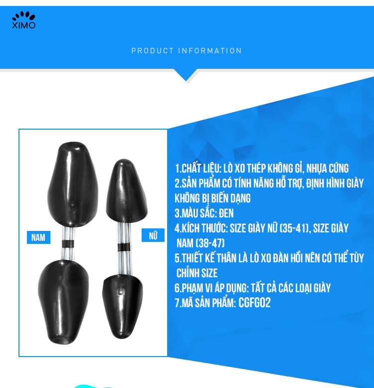 - Sản phẩm có tính năng hỗ trợ, định hình giày không bị biến dạng