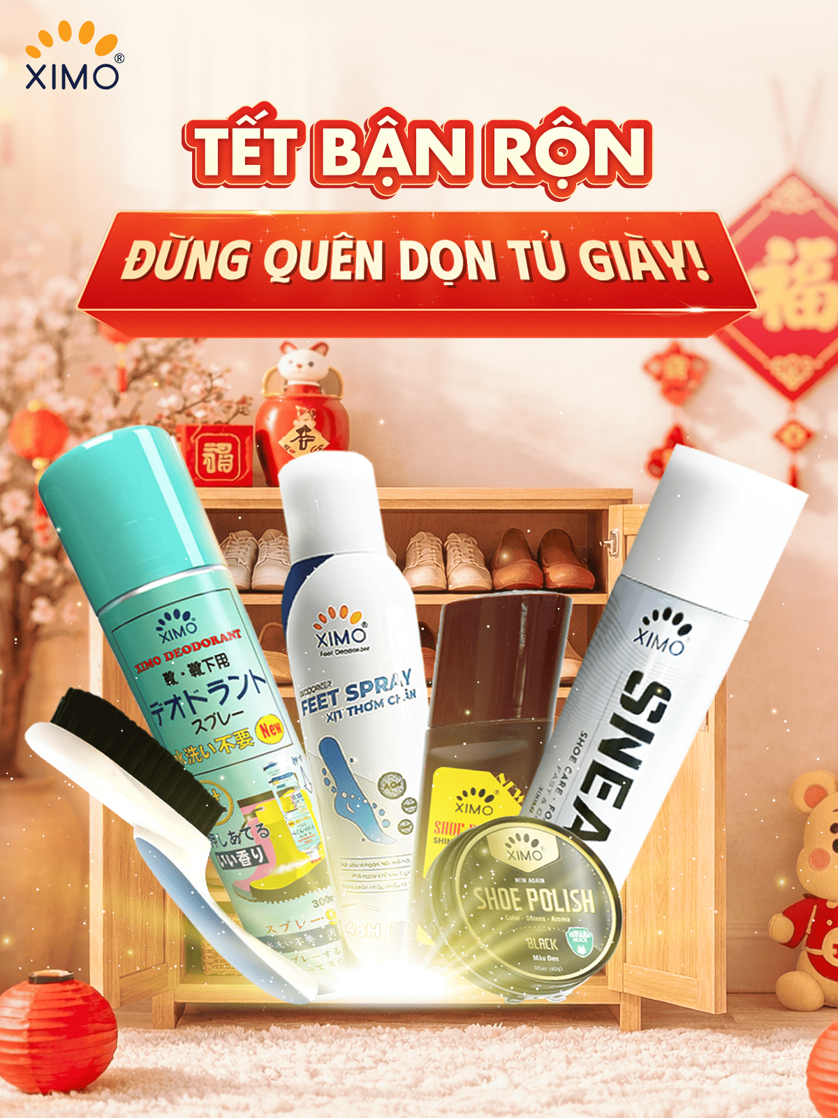 Một tủ giày sạch sẽ, giày dép thơm tho không chỉ giúp bạn tự tin hơn mà còn góp phần tạo nên hình ảnh chỉn chu, tinh tế trong những ngày đầu năm mới. Sau khi hoàn tất việc dọn dẹp nhà cửa, hãy dành thêm ít phút để làm sạch - khử mùi - làm mới giày dép. Đôi khi, sự thoải mái và tự tin lại đến từ những chi tiết rất nhỏ - như một đôi giày sạch, thơm và sẵn sàng cùng bạn bước ra ngoài đón Tết!