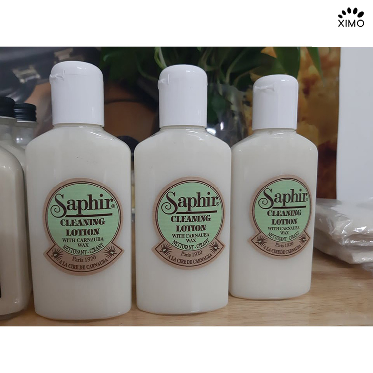 - Với thành phần giàu sáp Carnauba và các thành phần khác, Cleaning Lotion Saphir tạo bóng nhẹ nhàng và bảo vệ cho da trơn và da dầu, có tác dụng loại bỏ bụi bẩn, cặn xi dư.