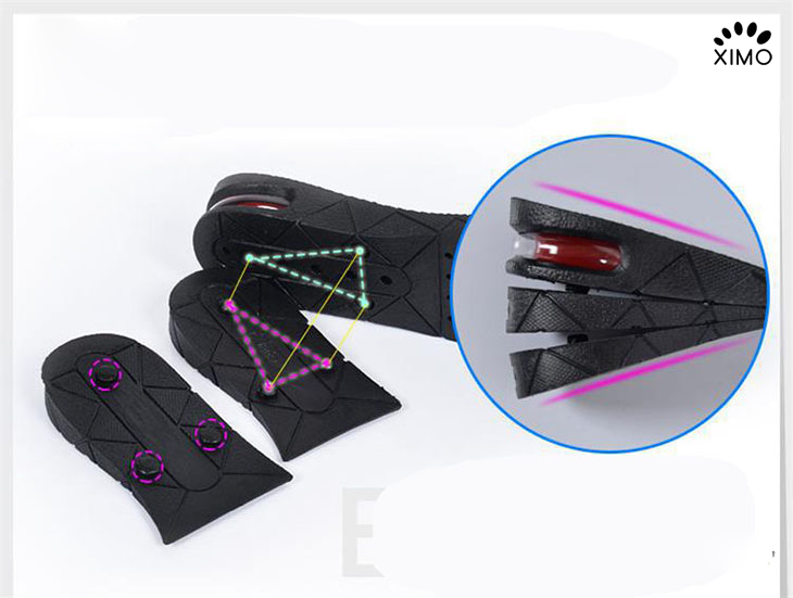 Đến với XIMO, giờ đây, vấn đề chiều cao “khiêm tốn” sẽ không còn là vấn đề nan giải dối với bạn nữa. Bạn cũng không cần phải mua đôi giầy tăng chiều cao. Chi với miếng lót giày tăng chiều cao có đệm khí cả bàn của XIMO, bạn sẽ tăng thêm từ 3-5cm ngay lập tức mà khó có thể phát hiện được. Một bộ sản phẩm bao gồm 1 đôi cho 2 chân, tạo cảm giác êm ái khi bạn lót vào giày, có thể táo gỡ từng miếng để điều chỉnh chiều cao tùy ý. Chiều cao tối đa có thể tăng tối đa lên tới 5 cm và khi bạn mang vào chiếc giày thì chiều cao của bạn có thể tăng lên từ 7-8 cm.