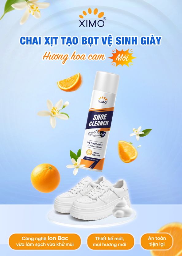 Việc vệ sinh giày thường tốn thời gian, dễ ám mùi và gây bất tiện trong những ngày bận rộn. Hiểu được điều đó, XIMO chính thức giới thiệu sản phẩm mới: Chai xịt tạo bọt vệ sinh giày phiên bản hương hoa cam, mang lại trải nghiệm làm sạch nhanh, đơn giản và dễ sử dụng cho mọi đối tượng.
